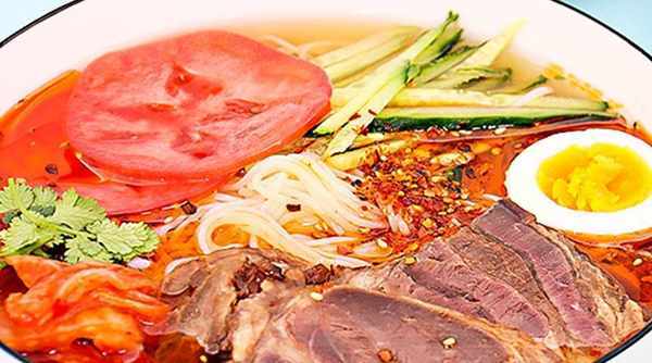 冷面吃起來非常勁道,冷面湯是酸甜口的,一口下去,瞬間就能喚醒我們的味蕾。