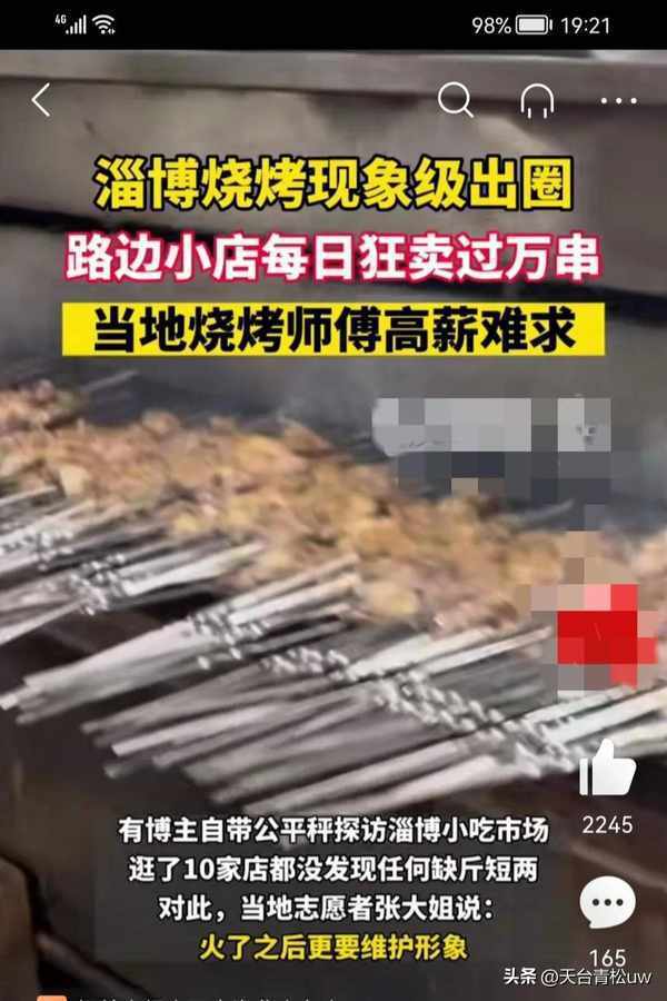 專門打假“鬼秤”的網紅主播來淄博打假,打假瞭十幾個攤位,無一例外的都是好評,攤主說市場監督的基本兩天就會來查一次,誰也不敢在秤上做手腳,也不能在秤上做手腳,做生意就要誠信。淄博燒烤能夠長時間的火爆是很多很多的淄博人努力的結果,不像有些旅遊城市不註重服務和質量,前些日子看過一個視頻,是一個遊客在某旅遊勝地吃瞭一碗面,氣質特別不好吃,然後就問攤主這麼難吃有回頭客嗎?攤主卻說:要什麼回頭客,我們這最不缺的就是人。不知道現在那個地方是否還有那麼多的人。