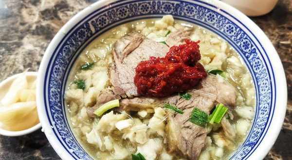 羊肉泡饃是陜西等地區的一道特色美食,主要由羊肉和泡饃組成。這道菜要求選用上等的羊肉,再配以各種調味料和饃,口感鮮美,令人垂涎欲滴。客人需自行將坨坨饃掰成著拇指頭大小的碎塊交給店傢,再制成泡饃讓客人享用,相信這一步驟,就會難倒一些不懂得外地人。