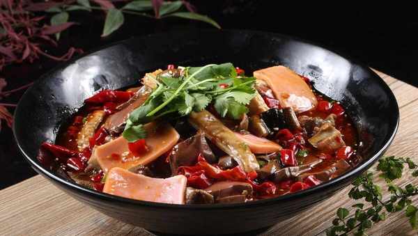 毛血旺是四川的一道火鍋菜,是火鍋裡面最辣的一道。這道菜有著獨特的氣質和烹飪技巧,火鍋中加入瞭各種動物內臟和血塊,再加上四川特有的辣椒和花椒,使得毛血旺成為一道獨特而又辣味十足的火鍋菜。各種動物內臟,讓外國人都敬而遠之,然而隻有吃過毛血旺的人,才懂得它特有的風味。