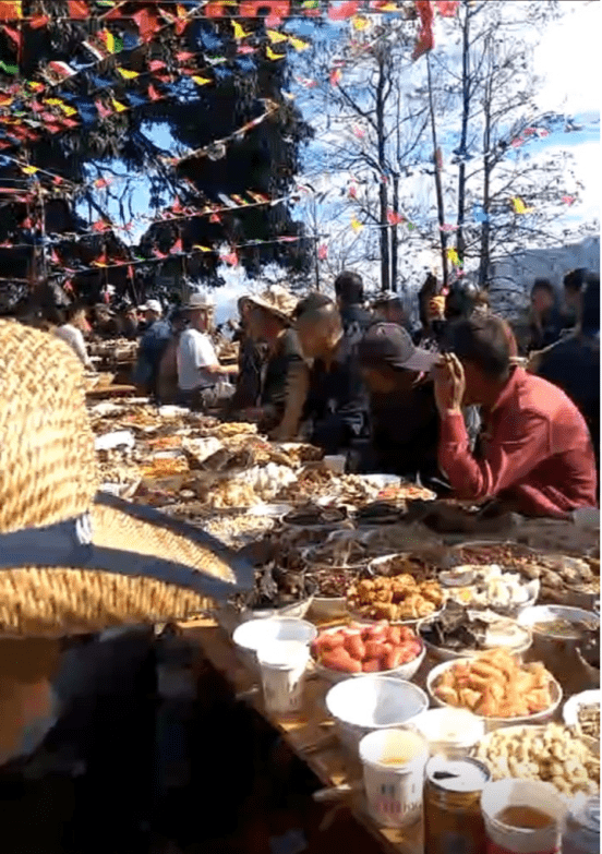 當地十月節時,也就是哈尼人的春節,大擺長街宴,老七的酒很受大傢追捧,推杯換盞。
