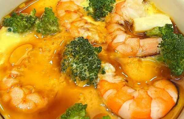食材準備:土雞蛋、豆腐、西蘭花、大蝦。