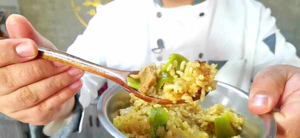 電飯煲已經跳閘瞭啊,證明這飯已經完全時尚瞭,咱們打開鍋蓋,非常有食欲,簡單翻拌一下啊,看見瞭嗎?這鍋底稍稍有點焦的感覺得嘎嘎香啊。