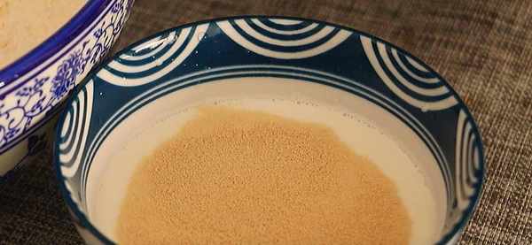 1.110毫升純牛奶放入碗中,加入3克酵母,調入15克白糖,攪打均勻,放在一邊備用。