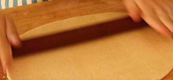 5.用搟面杖搟成長方形大面片。厚度在0.5厘米左右。