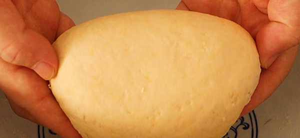 4.接著再下手揉幾下,表面很快就光滑瞭。不著急發酵,把他移到案板上。