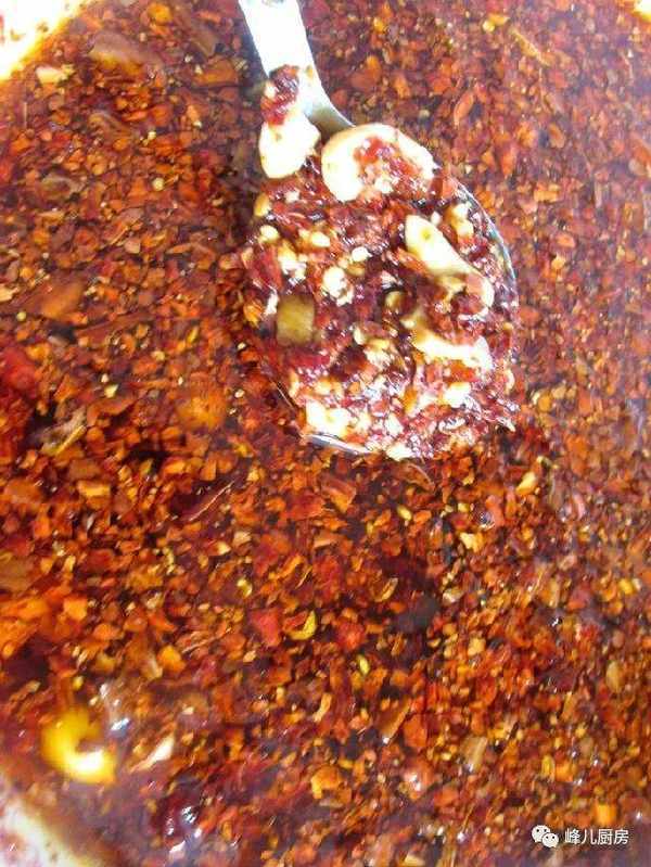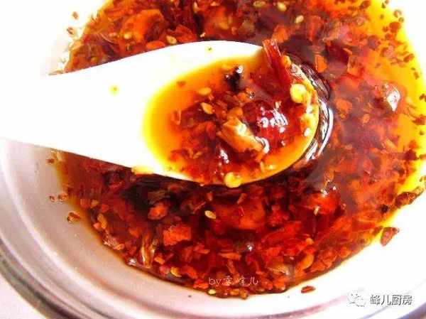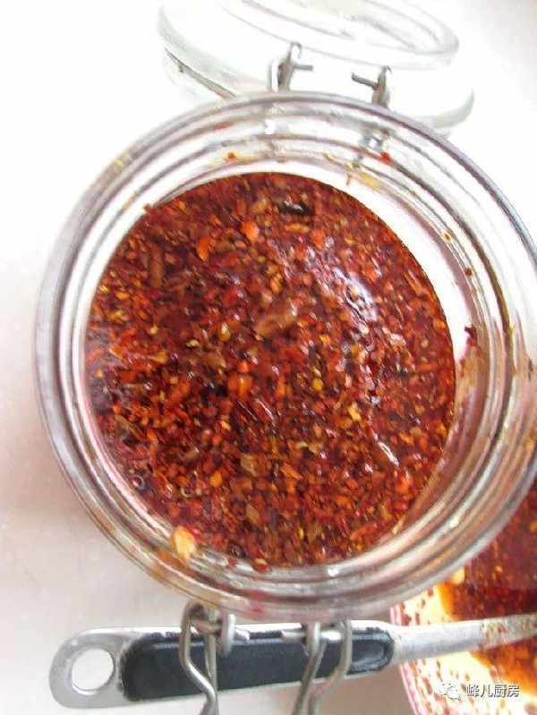 9、紅亮香辣的辣椒油做好瞭,隨用隨取,很方便哦。