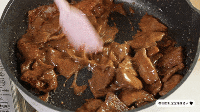 不粘鍋倒油,放入牛肉,翻炒到變色。