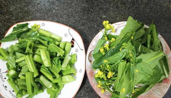 1:將菜地裡采摘回來的新鮮菜苔,擇選出比較老的部分,挑選根莖脆美的部分,再用清水洗幹凈。如果是菜市場買的話,2塊錢就能買一捆,價格實惠又便宜,為瞭避免會有農藥殘留,建議用清水泡一泡。