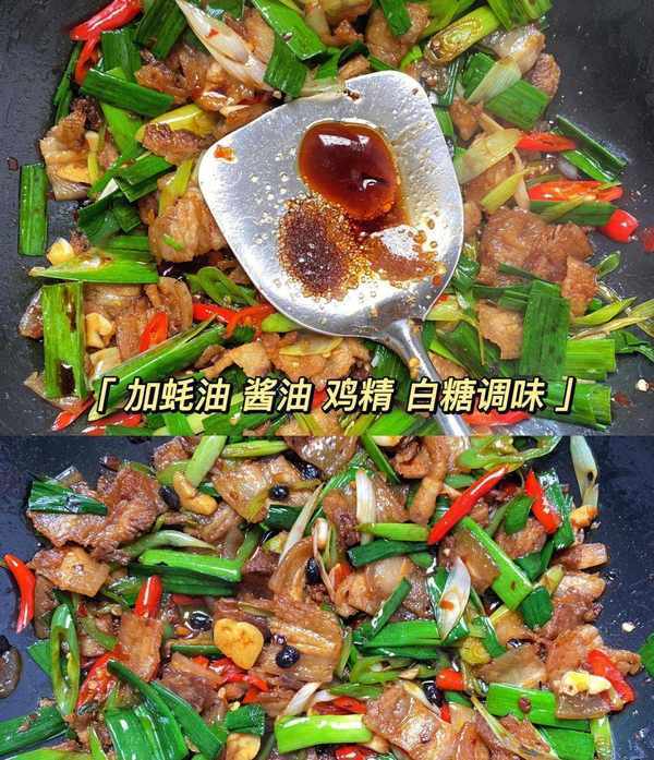 最後,放入切好的蒜葉,加入少量蠔油、醬油、雞精和白糖調味,再翻炒片刻即可出鍋。這樣制作出的蒜苗回鍋肉香氣四溢,口感鮮美,肥而不膩,非常下飯。