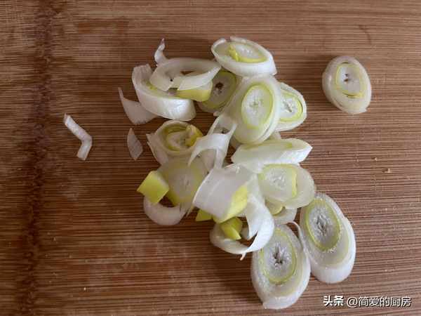 ⑤、把一小截蔥清洗幹凈,切成蔥花。