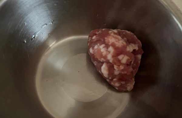①、首先準備肉末,我做這道菜用的是現成的肉餡,也可以用豬肉剁碎即可