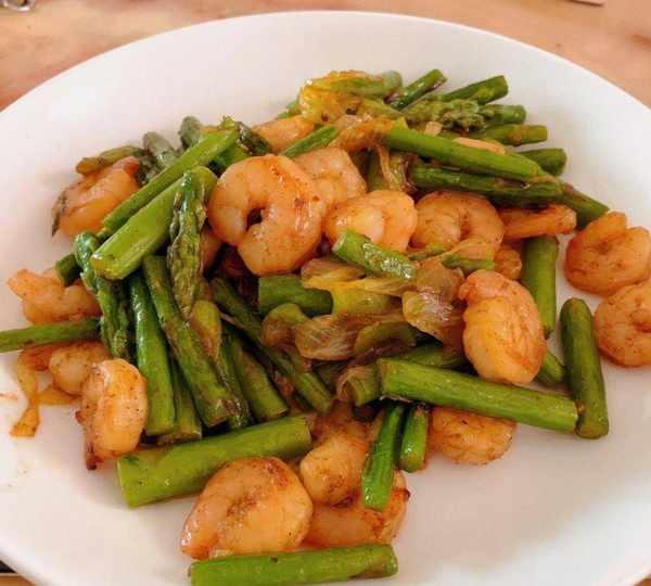 推薦吃法,蘆筍炒蝦仁。這樣搭配,顏色好看,白中透紅,綠中有白,大蝦吃起來一口一個,那才叫爽呢。
