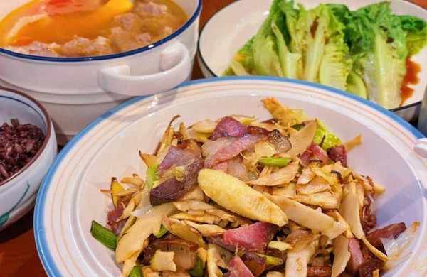 推薦美味吃法, 春筍炒臘肉。葷素搭配,營養均衡,深受大傢的喜愛。