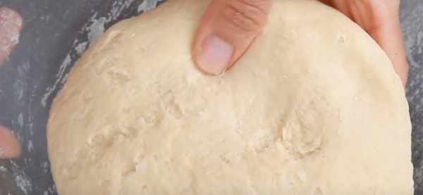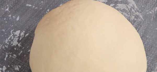 9.把它移到案板上,揉搓排氣,再把它搟成長方形面片,厚度0.5厘米左右。