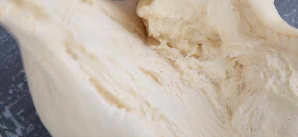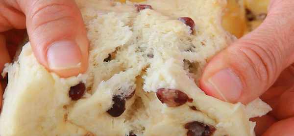 8.發酵好的面團體積變大,拉開內部可以看到豐富的蜂窩狀。