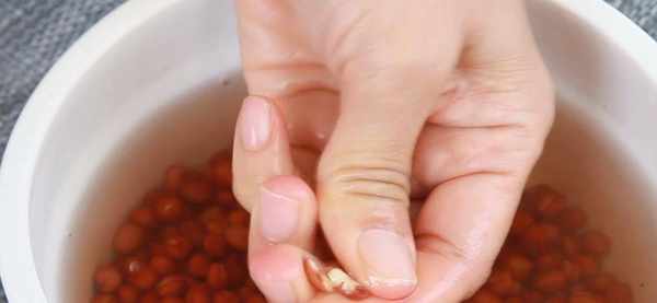1.紅豆放入清水,浸泡一個晚上,泡到用手一壓就開的程度就可以。