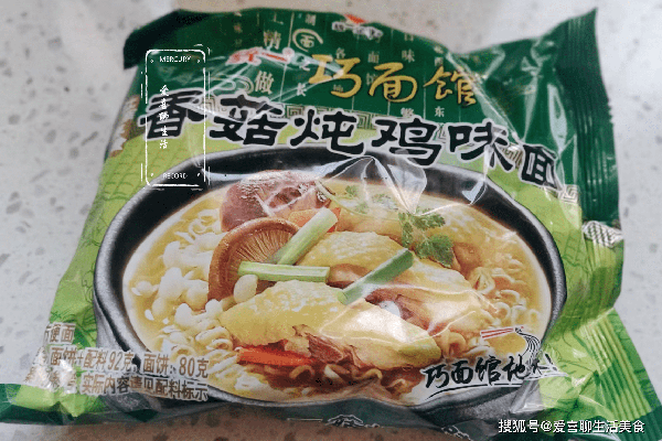 第一步,方便面浸泡。隨便取一包方便面,我取的是香菇燉雞面,然後用刀背打碎,打碎後開袋,倒入碗中,加入裡面的調料,再倒入開水浸泡一會。