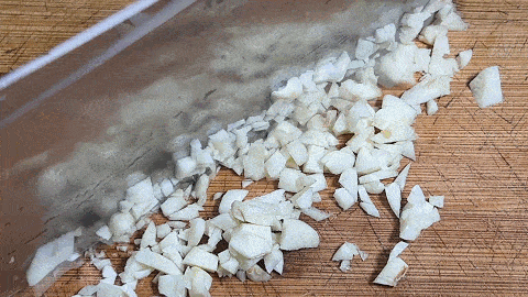 3. 大蒜幾粒切成蒜片,然後剁成蒜末