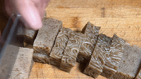 1. 一塊皮渣,用刀切成長方形厚塊
