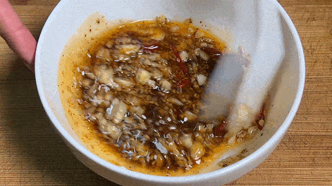 8. 接著加入生抽,用勺子攪勻,涼拌汁制作完成