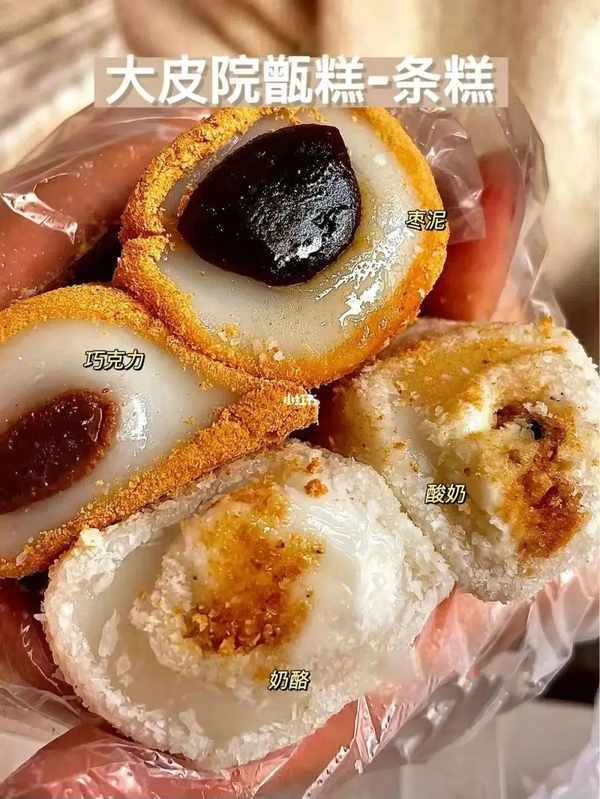 試試酥脆甜香的紅豆香酥千層餅、嘗嘗綿密紮實的清真純綠豆餅和香嫩Q彈的獅子頭魚丸,還有民族大街的排隊王——大皮院甑糕。