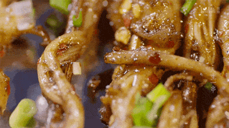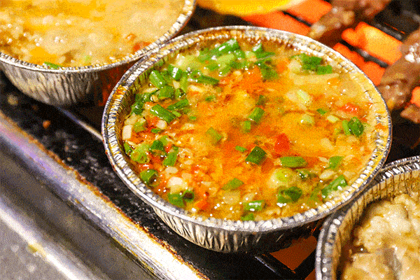 相比之下,在香辣蘸料中被烤得嫩如豆腐的烤腦花,都顯得有些尋常瞭。不過當腦花在烤架上嫩嫩地跳動,相信不少人的口水又會不爭氣地流下來。