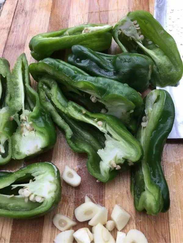 Step1 :咱們將青椒洗幹凈,從中間切開,蒜切片備用。