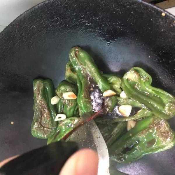 Step4 :翻炒至青椒皮大部分面積都起虎皮。