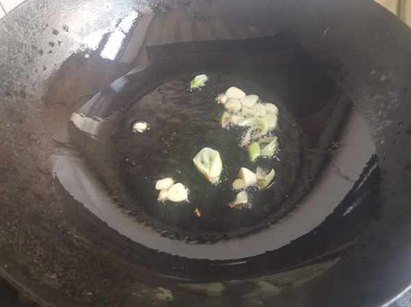 第四步:鍋裏放入花生油,燒熱,放入葱末和蒜末炒香。