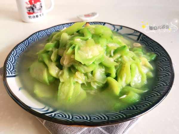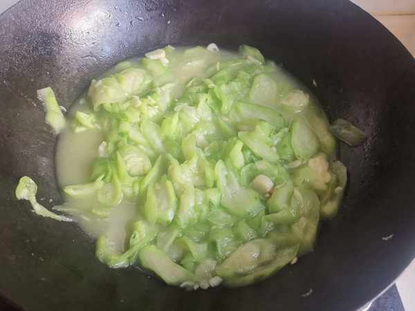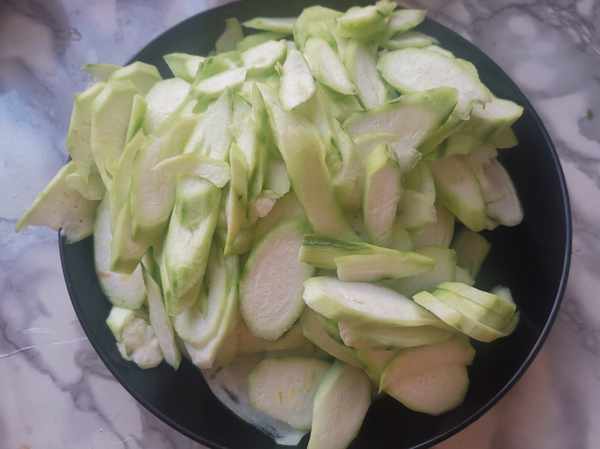 第八步:絲瓜炒不黑,其實是與絲瓜的品種有關係,這樣的帶棱絲瓜怎麼炒也不會發黑,味道還會微甜,很好吃,喜歡就試試吧~