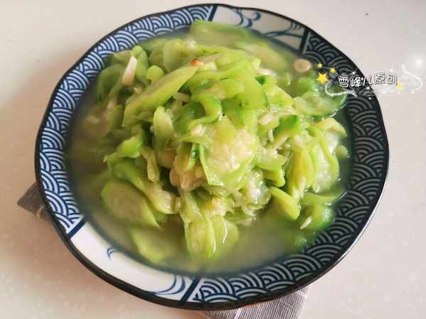 第七步:翻炒均勻出鍋即成。絲瓜中的水分較多,炒絲瓜一定不要放的水太多,不然就成絲瓜湯了。