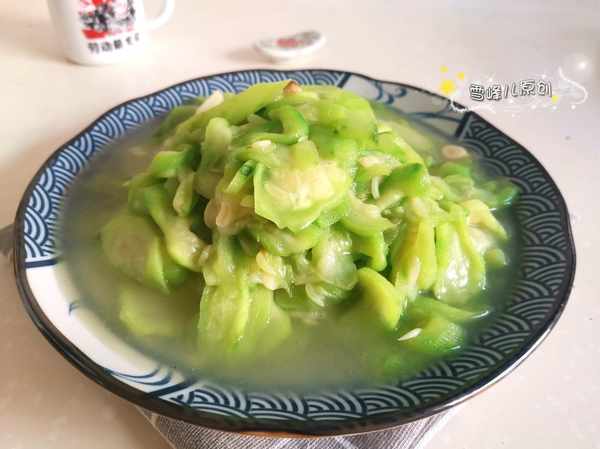 所用資料:絲瓜4根,蒜末少許,葱末少許,鹽適量,花生油適量。雞精(可放可不放)。
