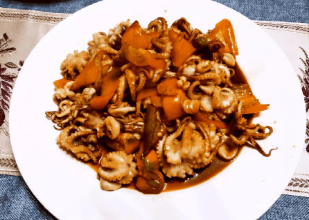 在山東沿海地區,當地人會把小章魚稱為八帶梢,每年四月底的時候,正是八帶梢大量出海的季節,在各大水產市場上都能買得到,而且鮮活價格還實惠。這種小章魚都是當年剛出生的,營養價值極高,而且味道還鮮美,當地人都會用它烹飪涼拌,或是燉煮,非常好吃。