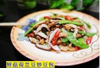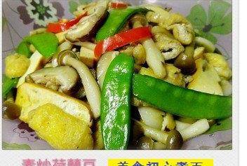 1荷蘭豆去雙邊粗纖維。。。冬菇、豆腐、蒜切片。。。豆卜、椒切條!2全部材料洗凈瀝幹!3少少油中火炒蒜片片刻。。。加入豆卜、豆腐略炒。。。再加入冬菇、啡菇炒勻。。。最後加入荷蘭豆、紅尖椒!4落味醂、美極醬油。。。兜勻炒熟即可第7款鮮菇荷蘭豆炒豆包