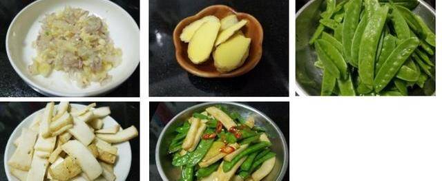 食材:荷蘭豆250克、炸魚片210克、蒜頭少許、幹蔥少許、雞粉1茶匙、黃酒少許、糖1/2茶匙、麻油少許、薑2-4片第二步做法步驟