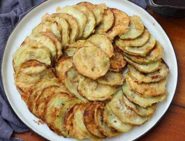 6.把茄餅炸至金黃色就可以出鍋瞭,香噴噴的茄餅,