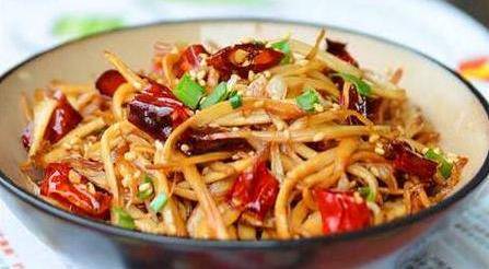 食材:杏鮑菇300克、花椒10克、蠔油1大勺、香油1小勺、白糖1小勺、幹辣椒10克、食鹽1/2小勺、生抽1大勺、雞精1/2小勺、蔥1段、薑2片、蒜3瓣、花生10克、芝麻10克、植物油50克