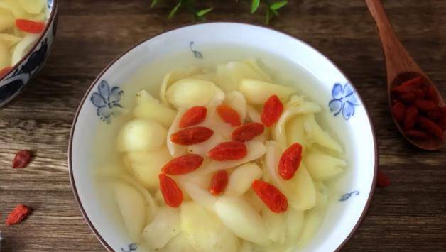 第二個想要介紹給大傢的美食就是枸杞百合湯,枸杞和百合都具有滋陰養血潤燥的作用,百合有養陰潤肺止咳,清心安神的功效,讓人吃瞭還想吃,難以忘懷
