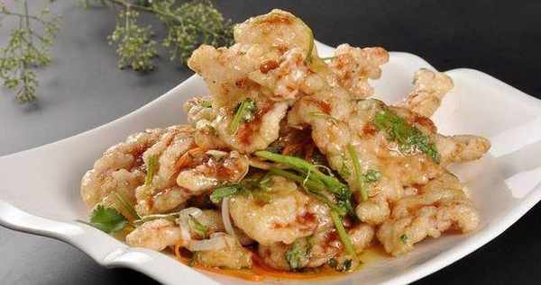 6.炒鍋內放油炒香蒜末,下炸好的肉片炒勻,倒入第2部的料汁和蔥薑絲,紅椒絲快速翻炒均勻,待每片肉都均勻沾滿料汁即可停火,灑入香菜拌勻即可