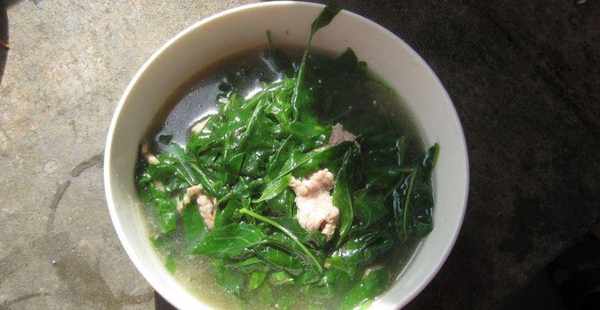 選用比較嫩的豬肉,切成片加入淀粉,放入水中煮熟,十分鐘左右之後,再把枸杞葉放進去,這樣吃起來也不會覺得很油膩。
