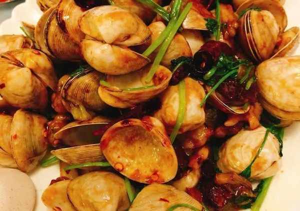 辣炒蜆子:提前把調料汁兒備好(蠔油白糖醬油按比例調汁兒)圓蔥切絲兒,香菜切段,泰椒切段,熱鍋放油,油溫可以後依次入薑、麻椒、泰椒 爆香後 (想吃圓蔥的可在此時放入翻炒半透明狀態)後入蜆子 翻炒幾下倒入料酒翻炒 再放入之前調的料汁 蜆子都裹上湯汁後 出鍋前 撒入香菜 即可!