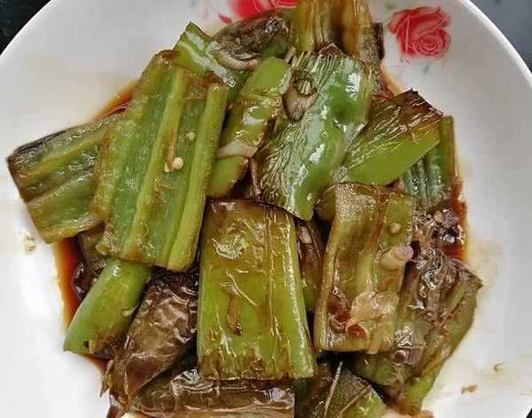 虎皮尖椒:青椒洗凈,去籽去蒂,切為3厘米的段,鍋內放油,四成熱放入青椒,煎至表面起皮即可,倒入配好的調料汁,翻炒均勻,出鍋!