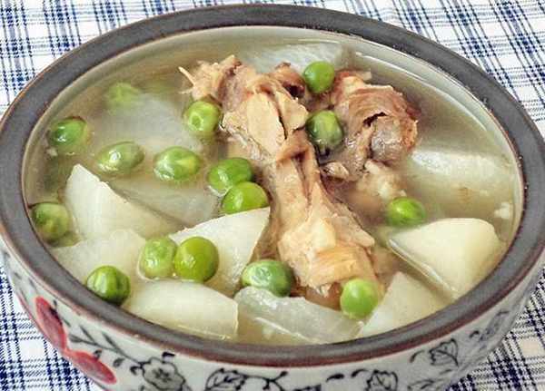 鴨骨250g、白蘿卜250g、豌豆80g、鹽適量、胡椒粉適量。