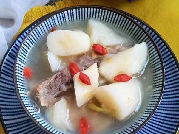 山藥適量、豬脊骨適量、蔥適量、薑適量、枸杞適量、水適量、鹽適量、料酒適量、薑粉適量。