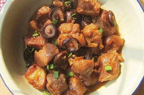 豬肉、香菇、生薑、冰糖、味極鮮、鹽、高湯。
