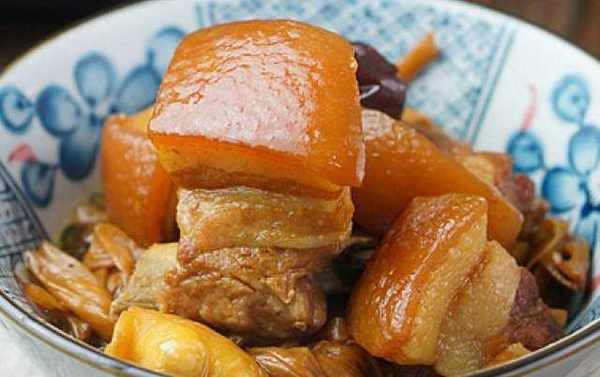 五花肉、筍幹、香菇、薑片、蔥、紅燒醬油、冰糖、油、食用鹽。