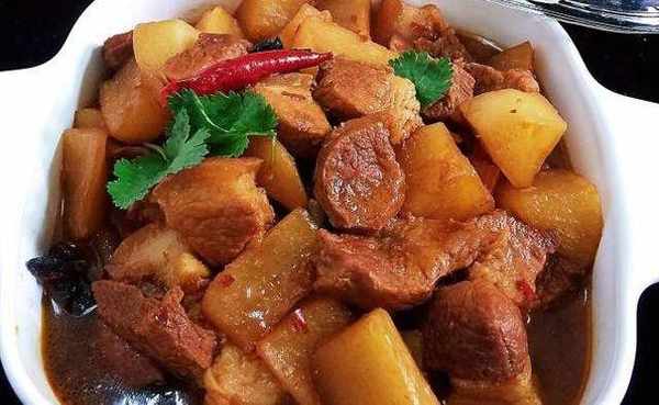 4、然後加土豆塊再燉10分鐘,土豆熟瞭加味精調味即可。
