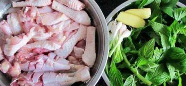 1.將光雞處理幹凈後,用刀均勻剁成小塊,清洗幹凈血水後,瀝幹水分待用。薄荷用1小勺鹽加清水浸泡5分鐘後,清洗幹凈瀝幹水分備用: