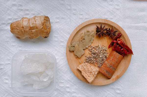 2、鹵豬蹄需要準備一些配料,這些配料是去腥味的關鍵,生薑是必不可少的,冰糖是鹵豬蹄的靈魂,能讓鹵豬蹄的顏色更加紅亮,豬蹄比較多,用瞭一整罐啤酒,啤酒能去腥,還能讓肉質更加軟爛,剩下的就是常見的香料,八角、香葉、桂皮、幹辣椒、小茴香、陳皮,其中陳皮有解油膩去腥味的功效,香料不要太多,否則香料的味道會把豬蹄本身的肉香味掩蓋;
